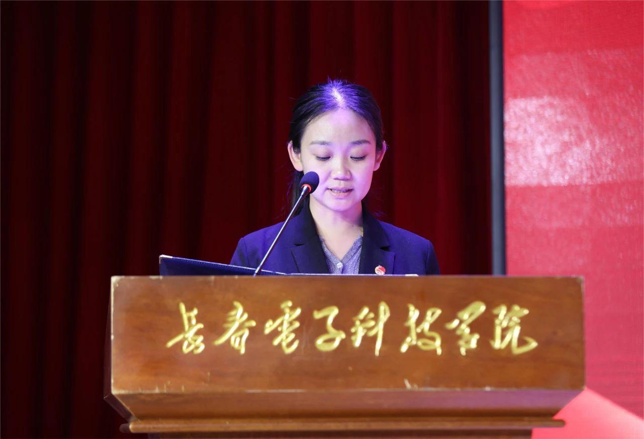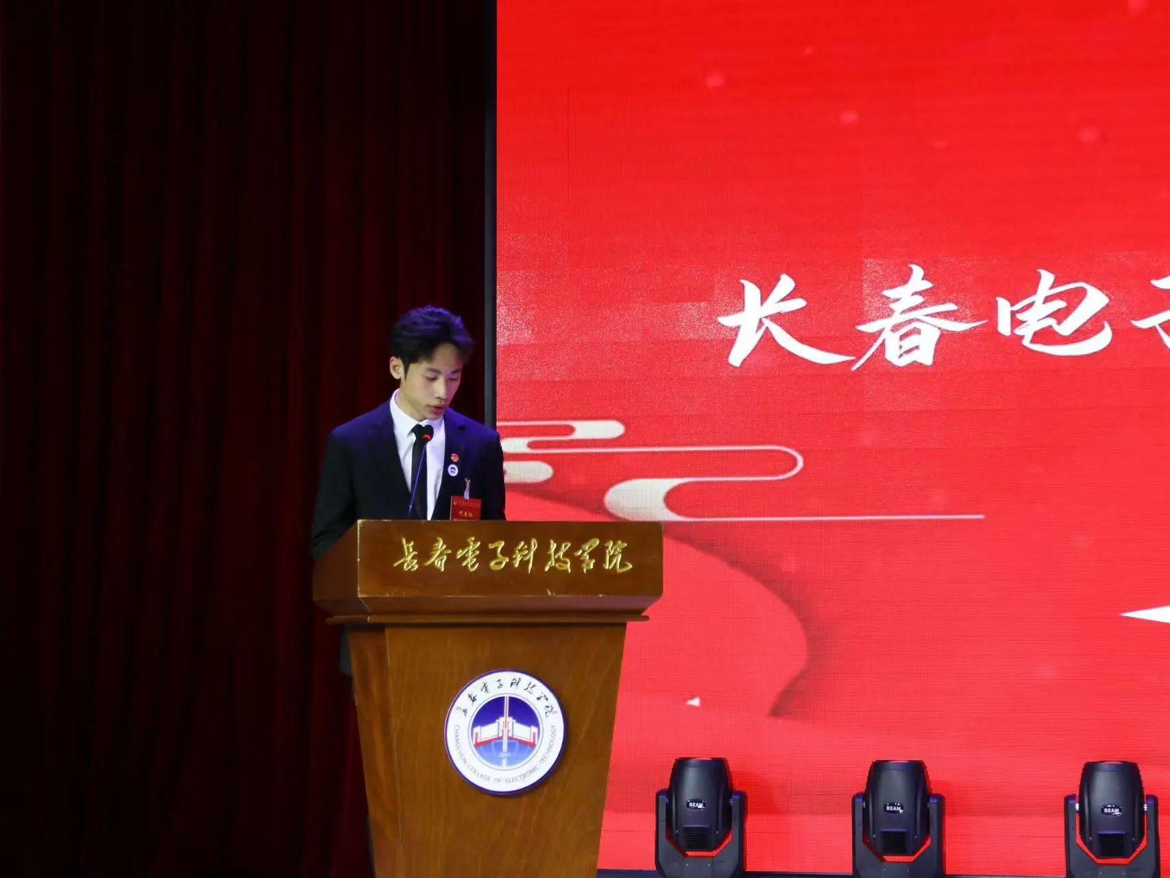 李松峰同學宣讀《關(guān)于長春電子科技學院二十四屆學生會工作報告的決議》